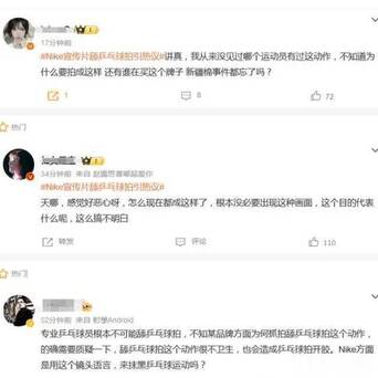 小编也是打开了视频看了一下,宣传片中,出现了多个运动的画面,包括了田径、足球等,其他的还算是比较正常,但在乒乓球这个项目上,一名运动员用舌头舔乒乓球拍的旁边,而且还特意给了特写,真是不知道nike是怎么拍出来的?要是拍运动项目就好好拍,这舔球拍是什么操作啊?真是令人难以理解。